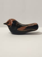 I made this after seeing a black bird with orange coloring on a walk. There is a little bit of green mixed in as well. I love this mini bird. Its one of my favorites. Made from Sculpey premo polymer clay, it was baked and dipped in polyurethane high gloss for added durability.